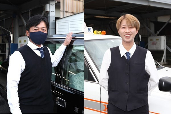 タクシー運転手として活躍している、新卒採用のドライバー(女性)と中途採用のベテラン(男性)にインタビューを行いました!